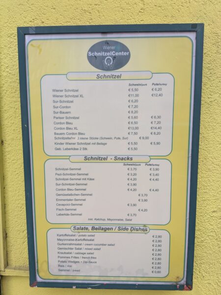 ほんまもんは仔牛肉らしいですが、ここはファストフード的なお店なので、豚か七面鳥だけでした。ウィーン風シュニッツェルって、日本でいうミラノ風ドリアみたいなものなんでしょうか。